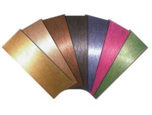 不銹鋼包括五顏六色不銹鋼,圖畫多種,可供廣闊選用的色彩有:鈦黑(黑鈦)、天藍(lán)、鈦金、寶石藍(lán)、咖啡色、茶色、紫色、古銅、青古銅,香檳金,玫瑰金、紫紅、鈦白、綠色等,適用于:星級酒店,KTV,大型商場,高檔娛樂場所等。也能夠依據(jù)客戶的圖紙和要求定做,可是需要出模板費用。